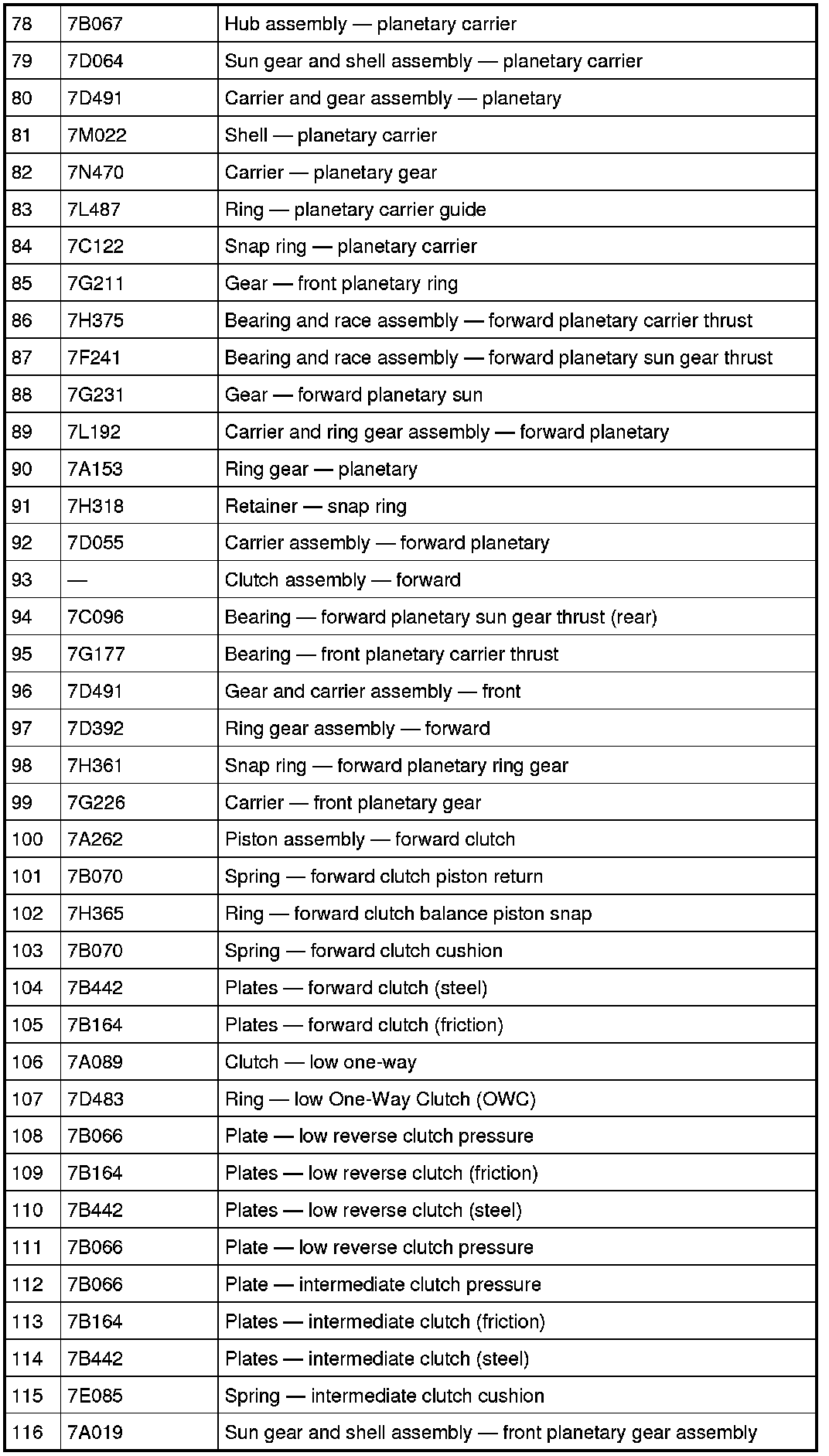 267. Position the overdrive/direct clutch assembly in the cover assembly, install the Dial Indicator Gauge with Holding Fixture 100-002 or a dial indicator and position the plunger on the overdrive clutch pressure plate. Apply 483 kPa (70 psi) of air pressure to the overdrive clutch piston port while recording the clutch pack clearance on the Dial Indicator Gauge. The clearance should be between 1.13 mm (0.044 in) and 2.28 mm (0.089 in). If the clearance is out of range, check the overdrive clutch pack for correct installation. If the overdrive clutch pack is correctly installed, install a new overdrive clutch pack.