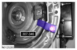 285. NOTICE: Only thread the bolts 6 to 8 turns or do not exceed 12 mm (0.472 in) in the torque converter. If the bolts are threaded too far, damage to the torque converter clutch surface can occur, causing torque converter failure.