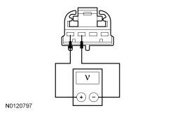 - Measure the voltage between paddle shifter switch C2428-1 circuit CET43 (GY) and C2428-2 circuit RE407 (YE/VT) harness side.