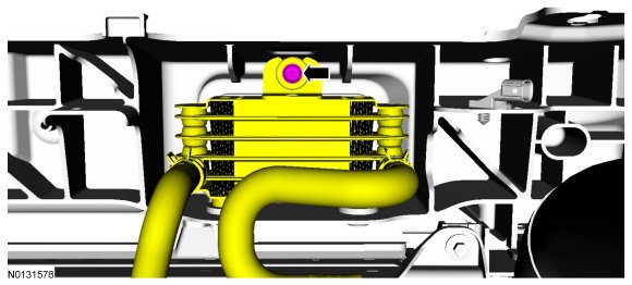 10. Remove the bolt and position the transmission fluid cooler aside.