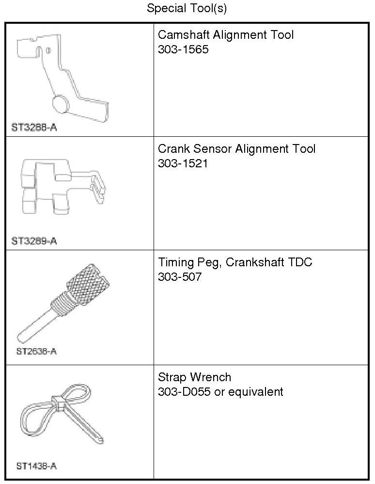 NOTICE: Do not loosen or remove the crankshaft pulley bolt without first installing the special tools as instructed in this procedure. The crankshaft pulley and the crankshaft timing sprocket are not keyed to the crankshaft. The crankshaft, the crankshaft sprocket and the pulley are fitted together by friction, using diamond washers between the flange faces on each part. For that reason, the crankshaft sprocket is also unfastened if the pulley bolt is loosened. Before any repair requiring loosening or removal of the crankshaft pulley bolt, the crankshaft and camshafts must be locked in place by the special service tools, otherwise severe engine damage can occur.