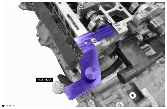 13. NOTICE: The Camshaft Alignment Tool is for camshaft alignment only. Using this tool to prevent engine rotation can result in engine damage.
