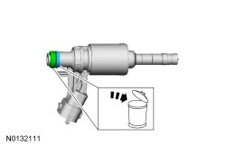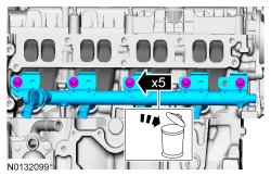38. NOTE: Use compressed air and remove any dirt or foreign material from the cylinder head, block and general surrounding area of the fuel rail and injectors.