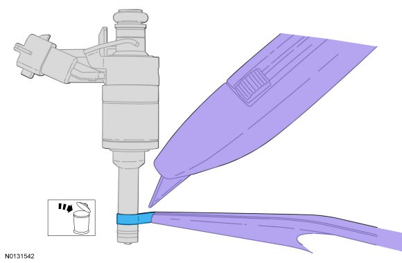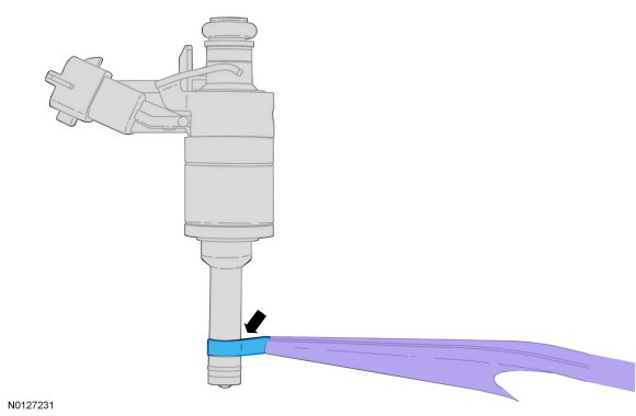 43. NOTICE: Do not attempt to cut the lower Teflon(R) seal without first pulling it away from the fuel injector or damage to the injector may occur.