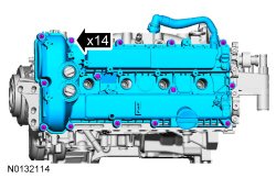 NOTICE: During engine repair procedures, cleanliness is extremely important. Any foreign material, including any material created while cleaning gasket surfaces that enters the oil passages, coolant passages or the oil pan, can cause engine failure.