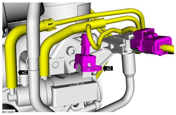 138. Connect the 2 turbocharger control vacuum hoses and 2 electrical connectors.