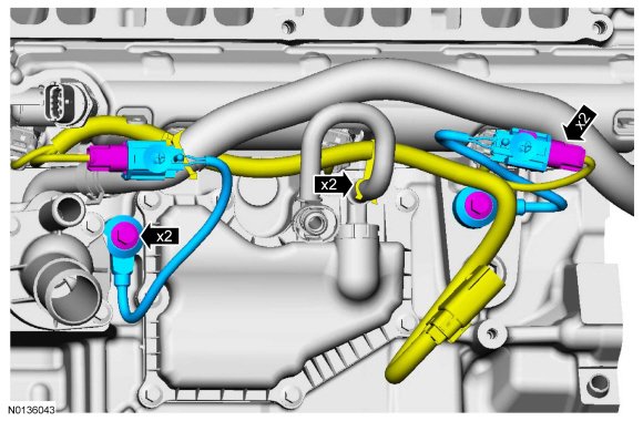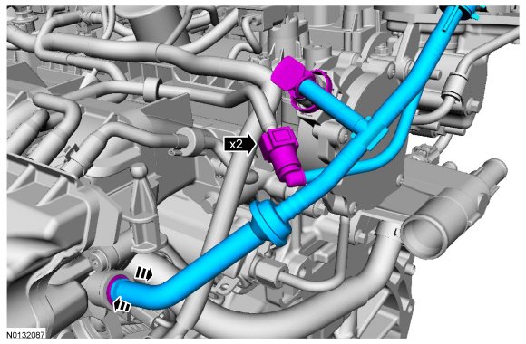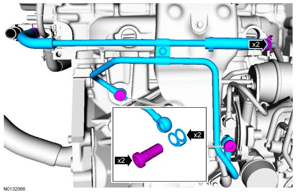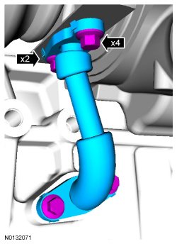 134. NOTE: Do not reuse the turbocharger oil return tube/gaskets, new parts must be installed.