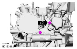 107. Tighten the 2 high pressure fuel tube bracket bolts to 10 Nm (89 lb-in).