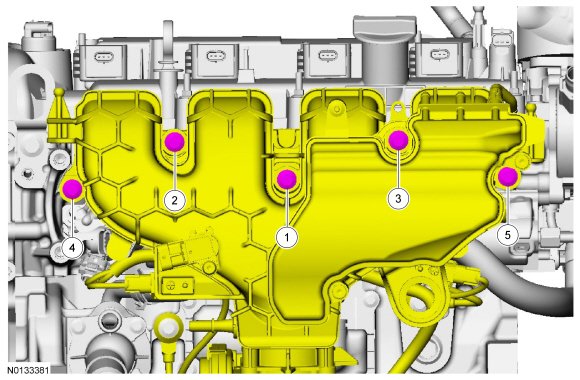 114. NOTICE: If the engine is repaired or replaced because of upper engine failure, typically including valve or piston damage, check the intake manifold for metal debris. If metal debris is found, install a new intake manifold. Failure to follow these instructions can result in engine damage.