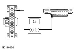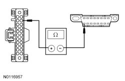- Measure the resistance between the IPC (Instrument Panel Cluster) C220-25, circuit VDB13 (BU/GY), harness side and the DLC (Data Link Connector) C251-1, circuit VDB13 (BU/GY), harness side.
