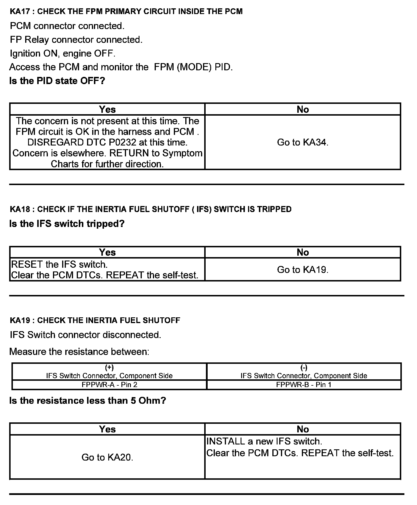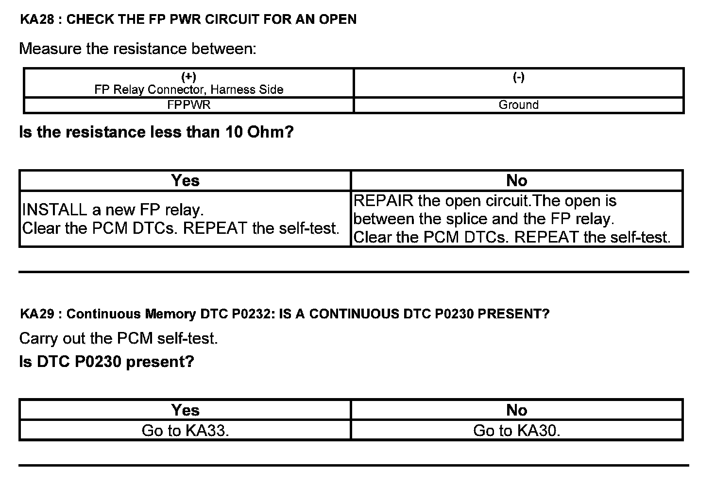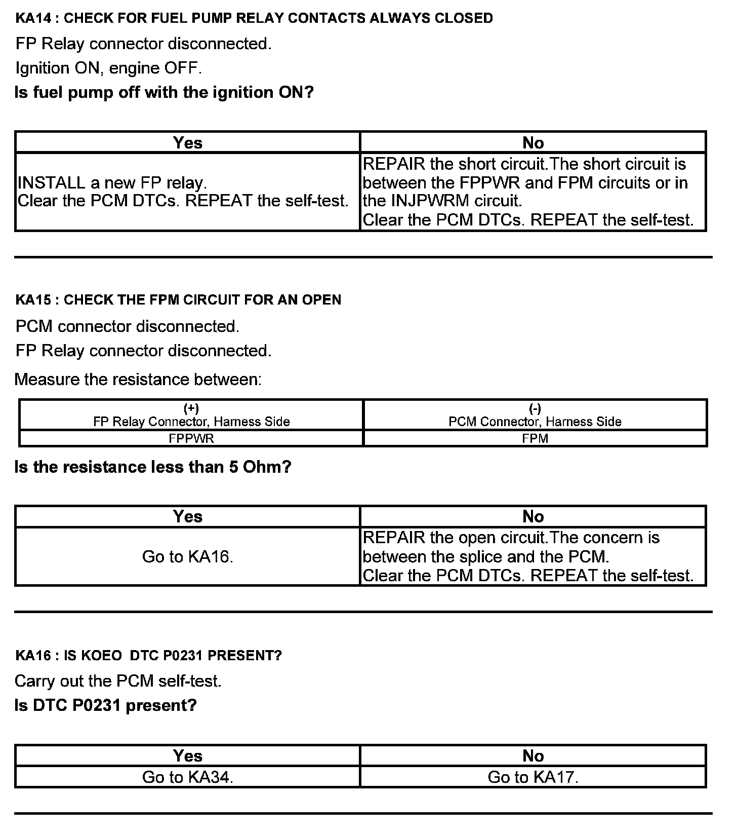 Test KA: Fuel Pump (FP) Relay