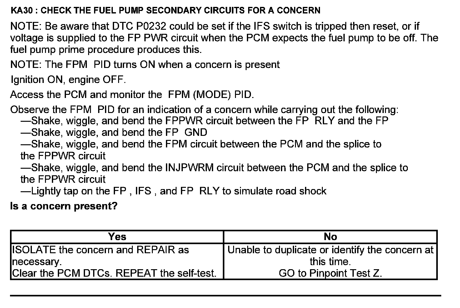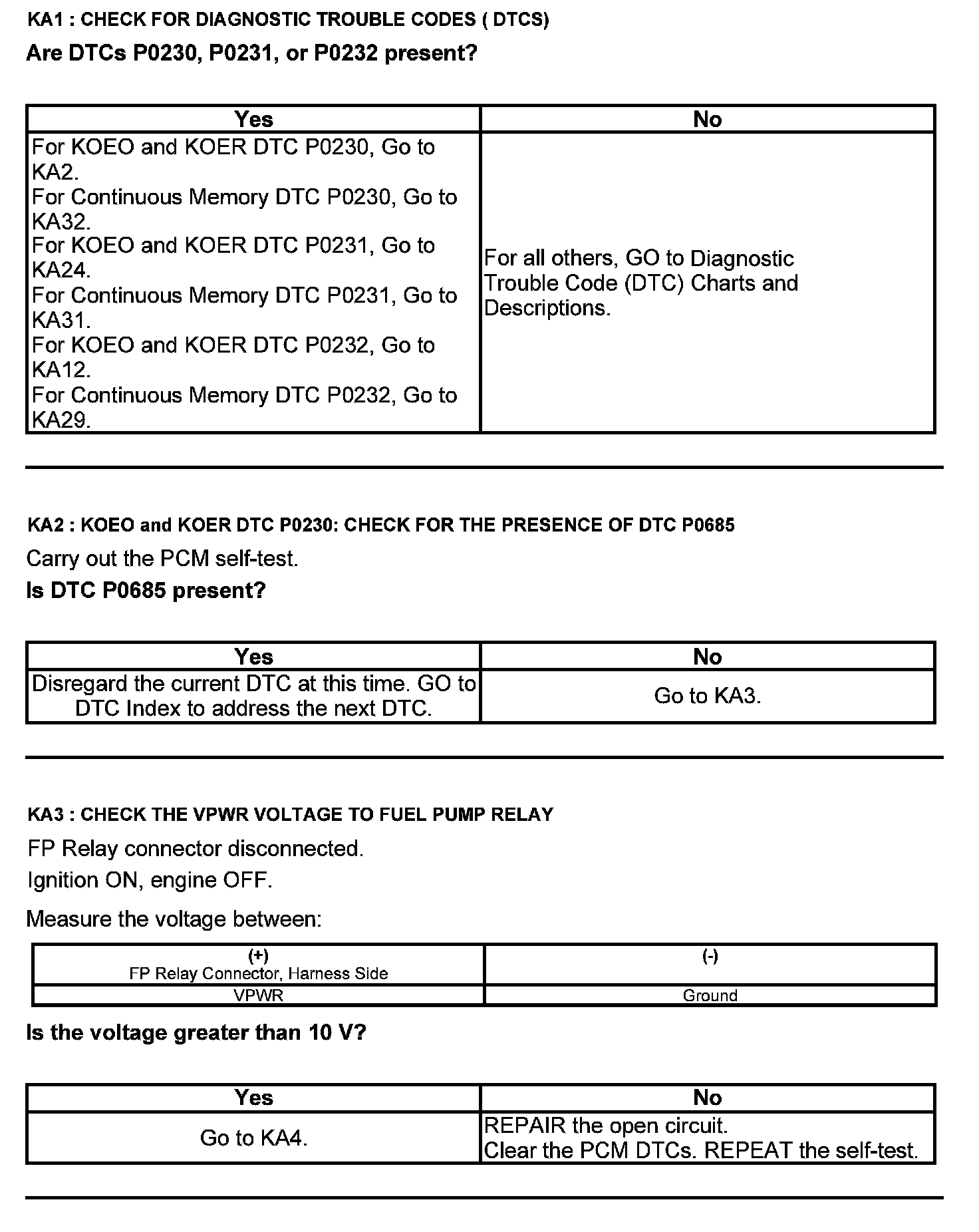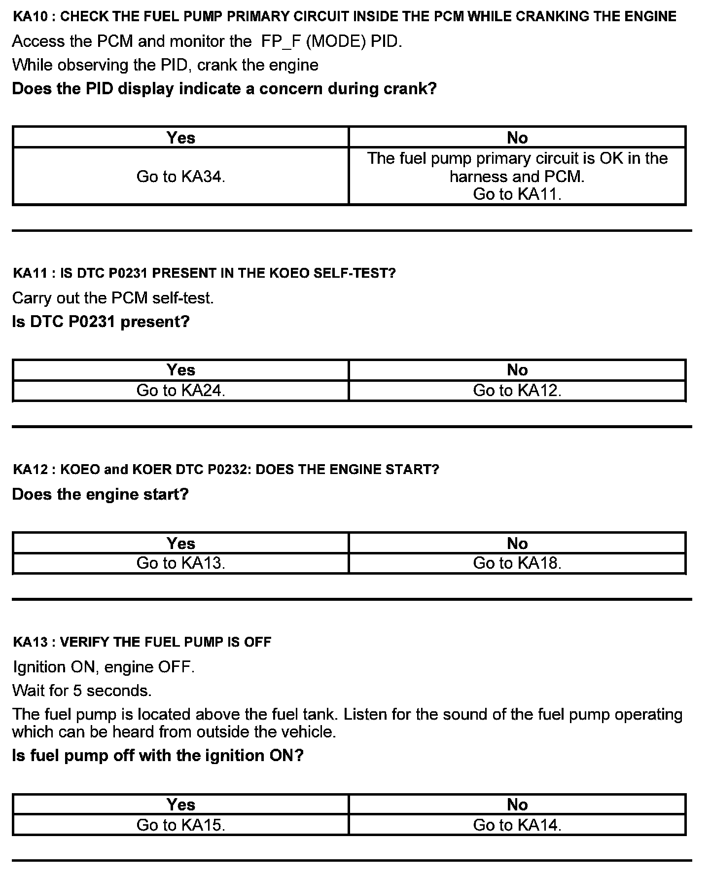 Test KA: Fuel Pump (FP) Relay