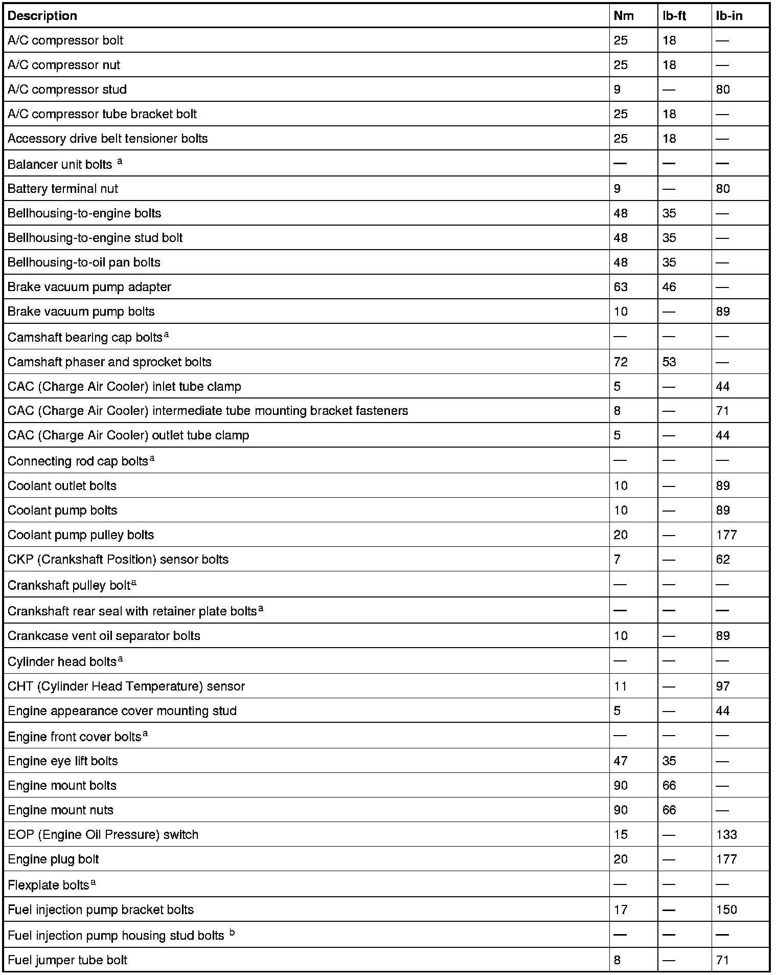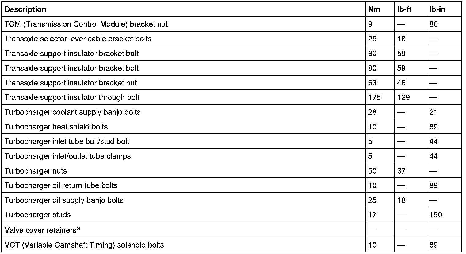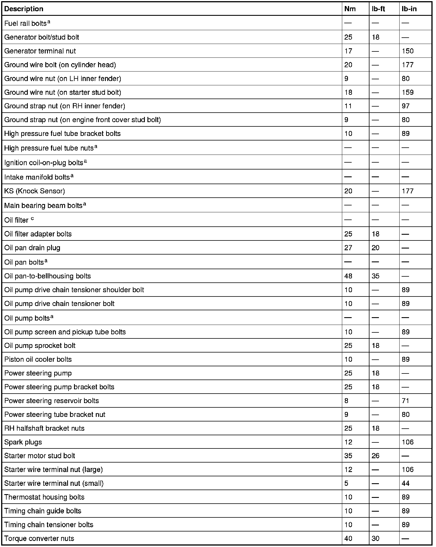 Torque Specifications