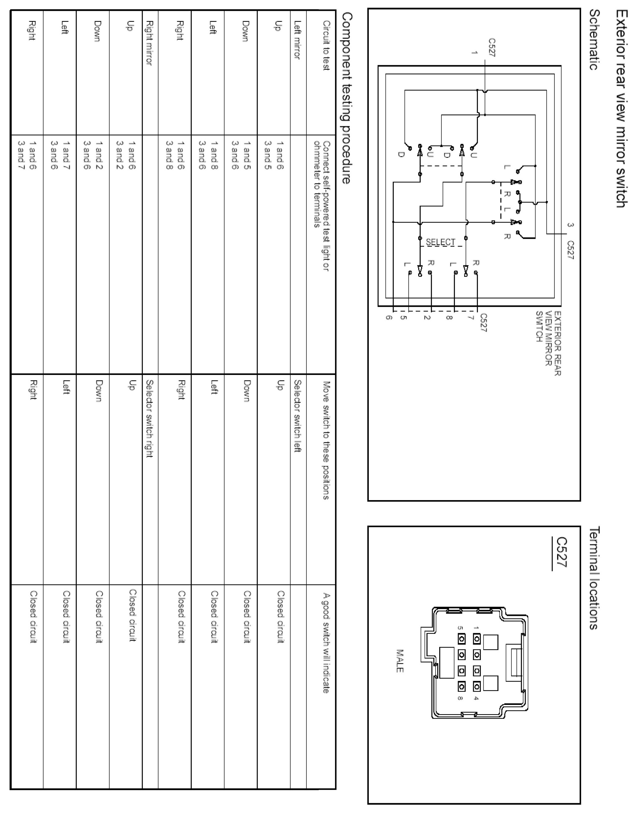 Power Mirror Switch: Testing and Inspection