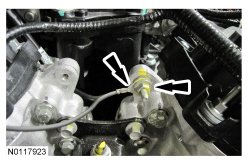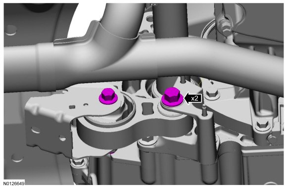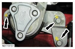 32. Tighten the 2 engine roll restrictor through bolts to 115 Nm (85 lb-ft).
