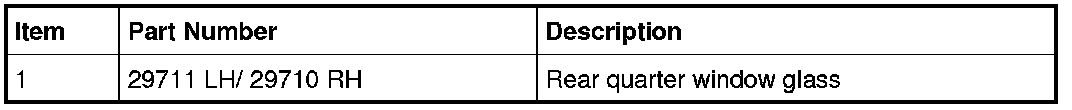 NOTICE: Before positioning the rear quarter glass, open vehicle windows to prevent the air pressure of closing doors from affecting the urethane adhesive bond.