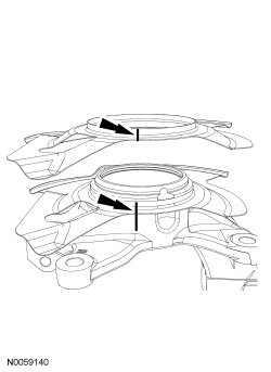 2. Index-mark the brake disc shield to the wheel knuckle, then align the new brake disc shield to the existing shield and transfer the index mark.