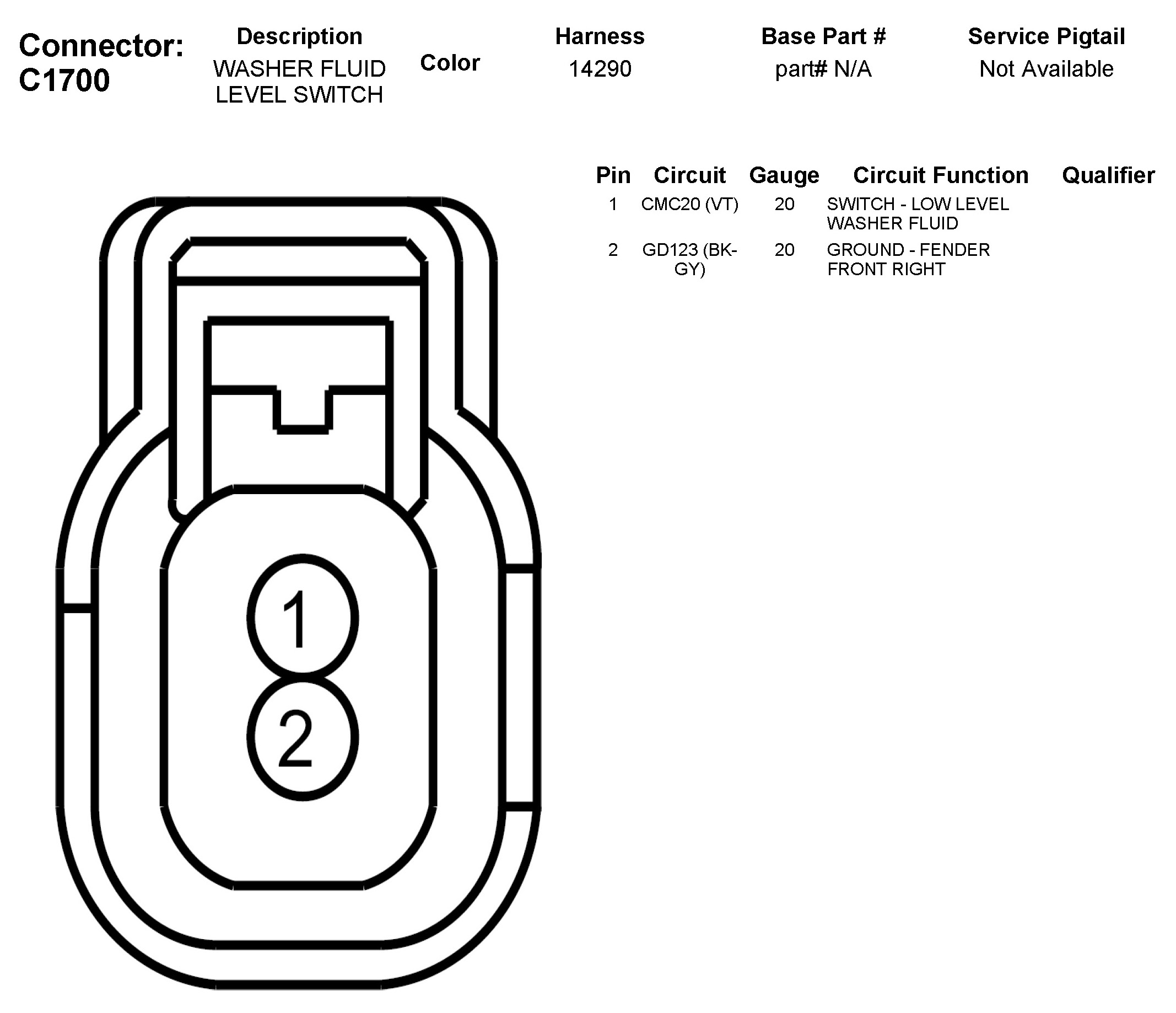 C1700 Washer Fluid Level Switch