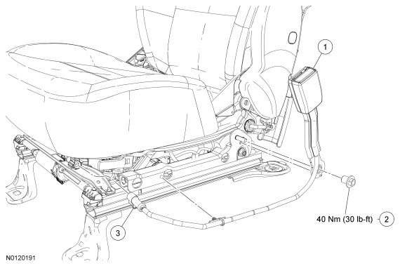 - LH seat with a manual seat track, remove the safety belt buckle bolt.