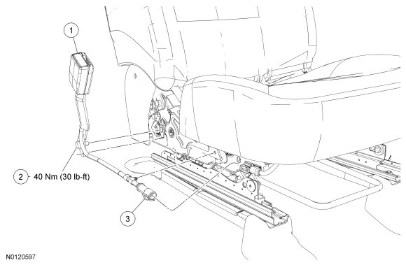 - All seats with a power seat track and RH seat with a manual seat track, remove the safety belt buckle nut.