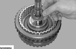 94. Position the overdrive/direct clutch assembly in the rear cover.