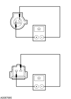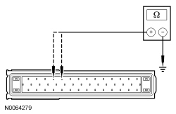 - Measure the resistance between the ABS module connector, harness side and the suspect wheel speed sensor connector, harness side as indicated in the following chart: