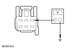 - Measure the voltage between PSCM (Power Steering Control Module) C2231A-1, circuit CBP35 (YE/GY), harness side and ground.