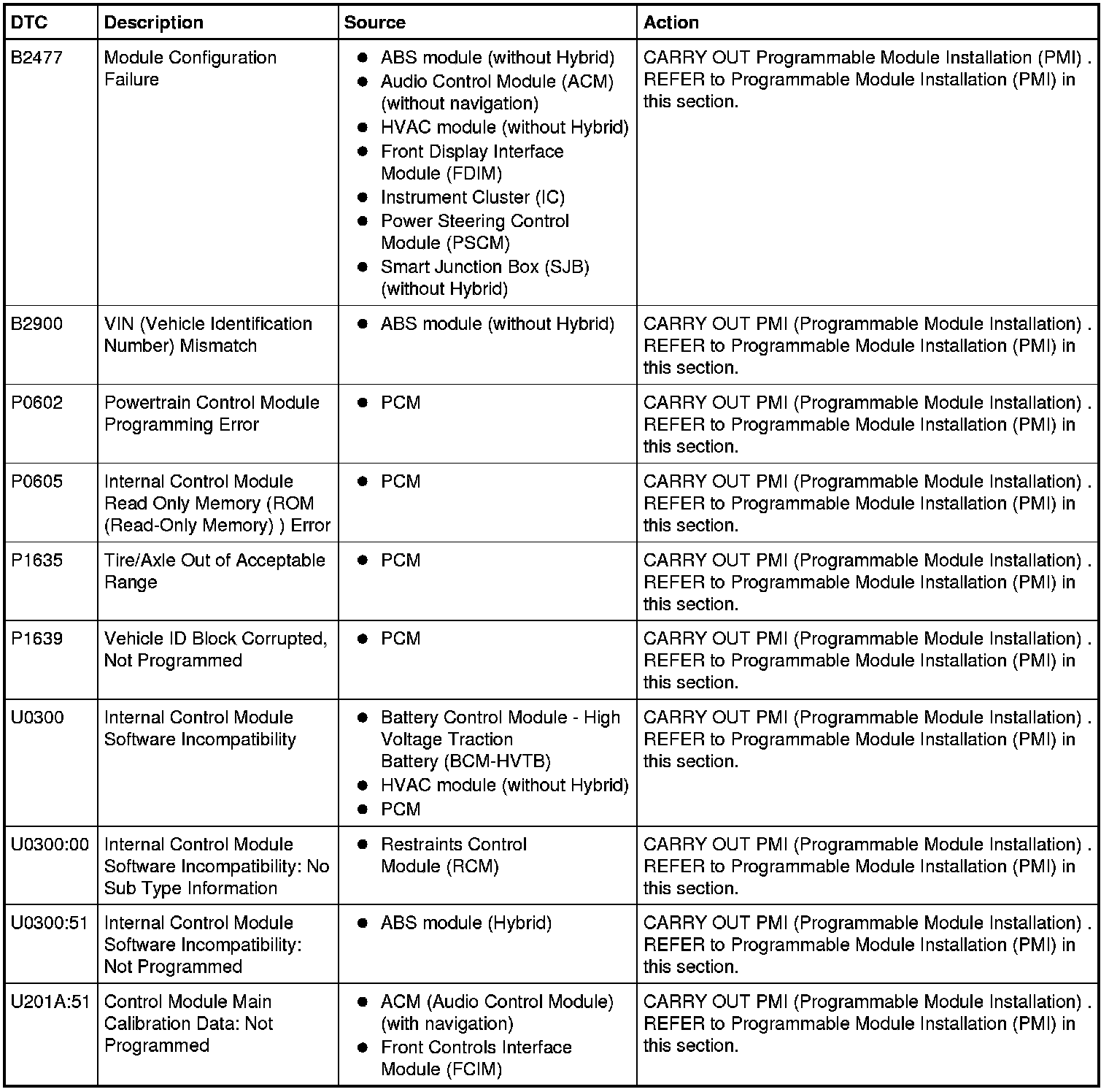 NOTE: Some modules on this vehicle utilize a 5-character DTC followed by a 2-character failure-type code. The failure-type code provides information about specific fault conditions such as opens, or shorts to ground. Continuous memory DTCs have an additional 2-character DTC status code suffix to assist in determining DTC history.