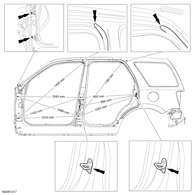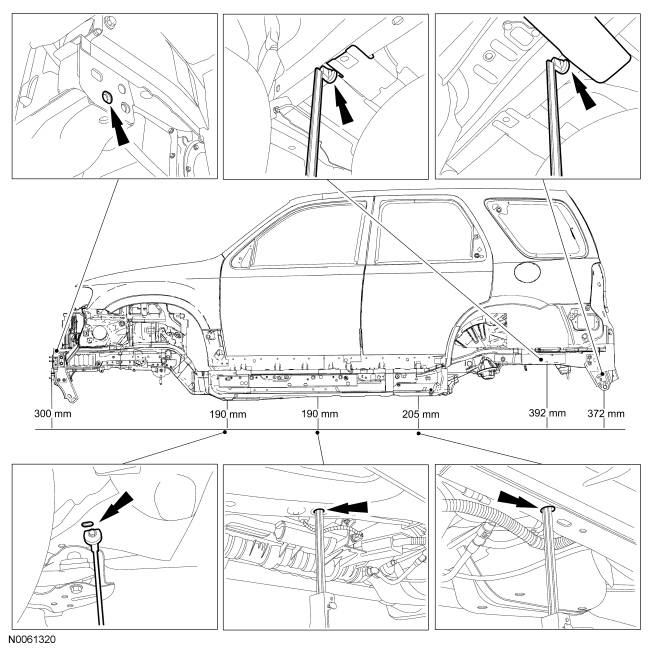 NOTE: The following dimensional illustrations are common for Ford Escape and Mercury Mariner.