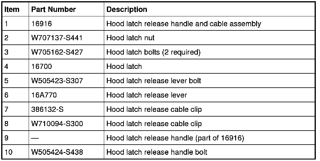 Hood Latch and Components - Exploded View
