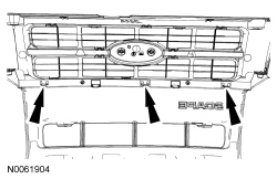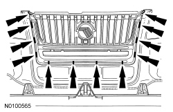 5. Push outward on the 12 radiator grille clips to release the radiator grille from the bumper cover and remove the radiator grille.