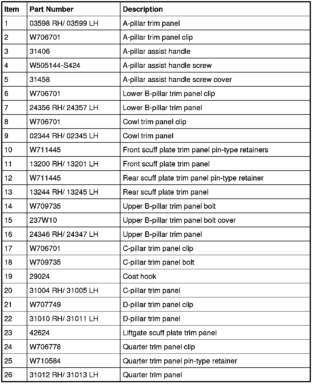 Interior Trim - Exploded View