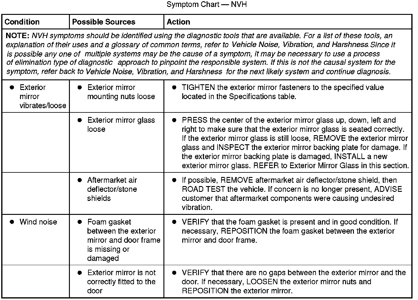 Symptom Chart - NVH