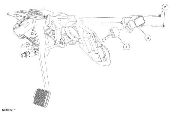 1. Remove the brake pedal bracket. For additional information, refer to Brake Pedal and Bracket- Hybrid Brake Pedal and Bracket.