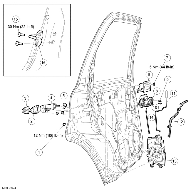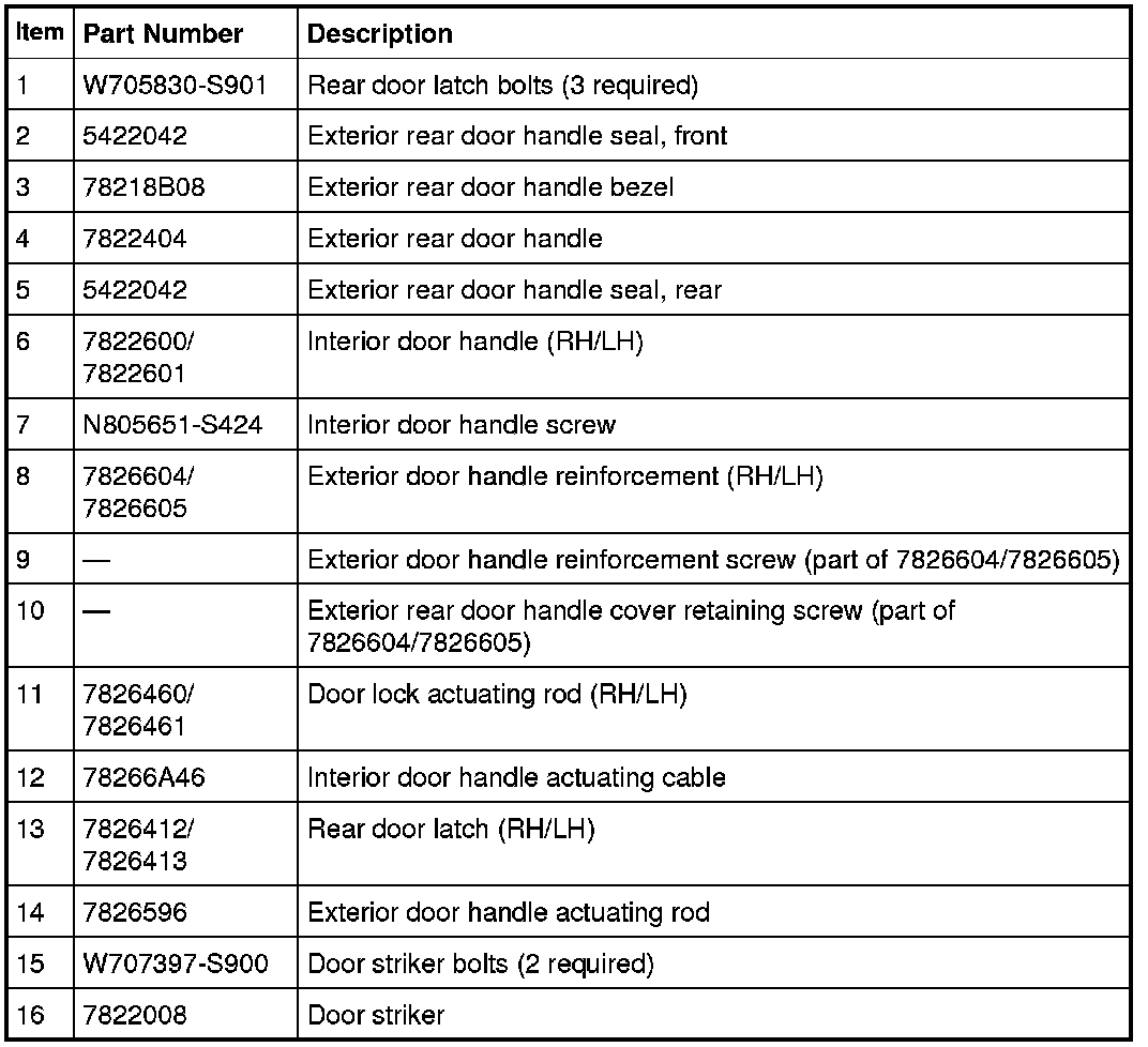 Rear Door Handles, Locks and Latches - Exploded View