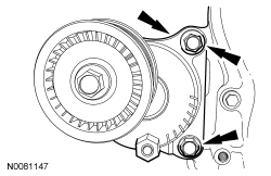 121. Install the 3 coolant pump pulley and bolts.