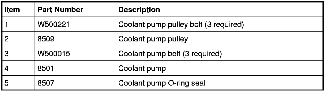 5. NOTICE: Make sure the coolant pump is correctly seated to the engine block before installing and tightening the fasteners, or the coolant pump may be damaged.