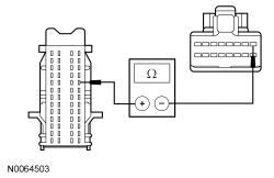 - Measure the resistance between the SJB (Smart Junction Box) C2280B-48, circuit CLS32 (BN/YE), harness side and the multifunction switch C202-1, circuit CLS32 (BN/YE), harness side.