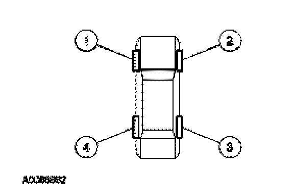 NOTE:For vehicles with different front and rear tire pressures (such as the E-Series and certain F-Series), the tire pressure sensors must be trained following a tire rotation. Failure to train the sensors will cause the TPMS indicator to illuminate. For vehicles with the same tire pressure for front and rear tires, tire rotation will not affect the system.