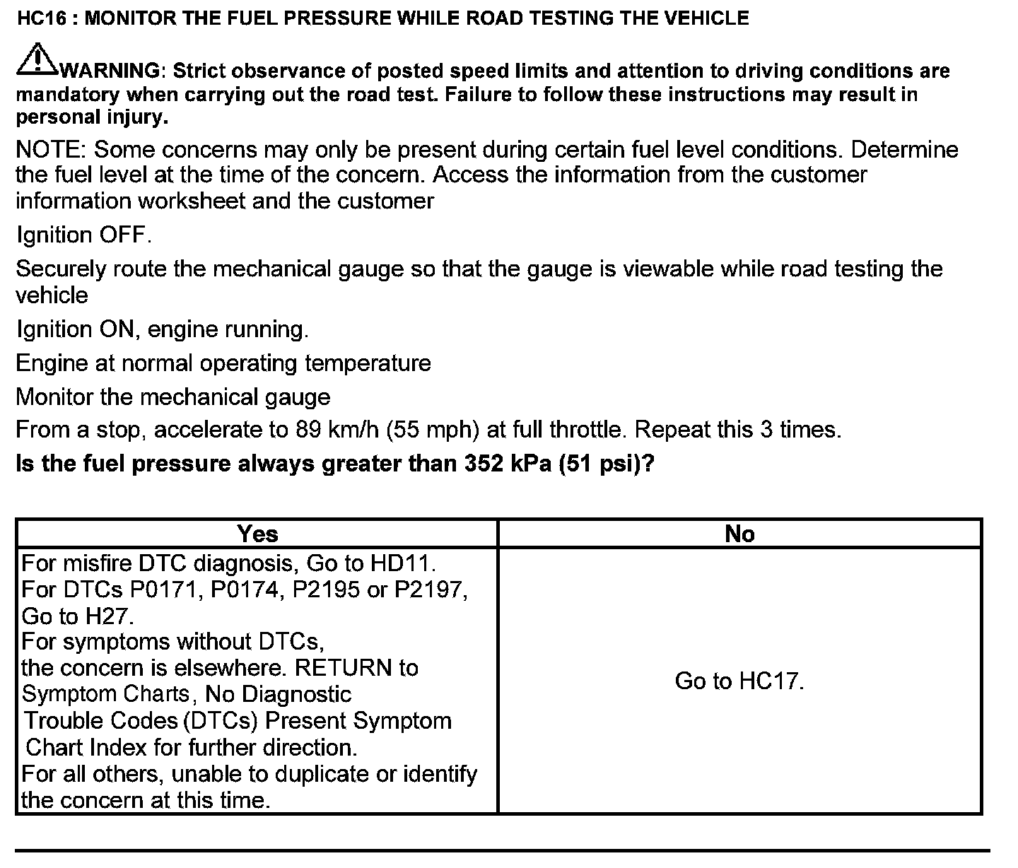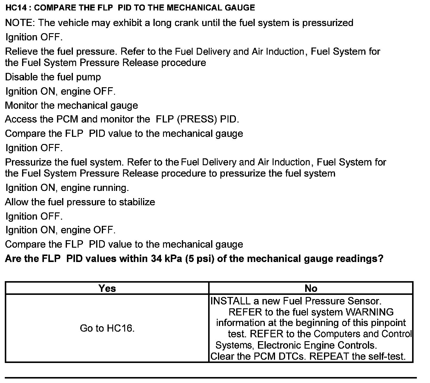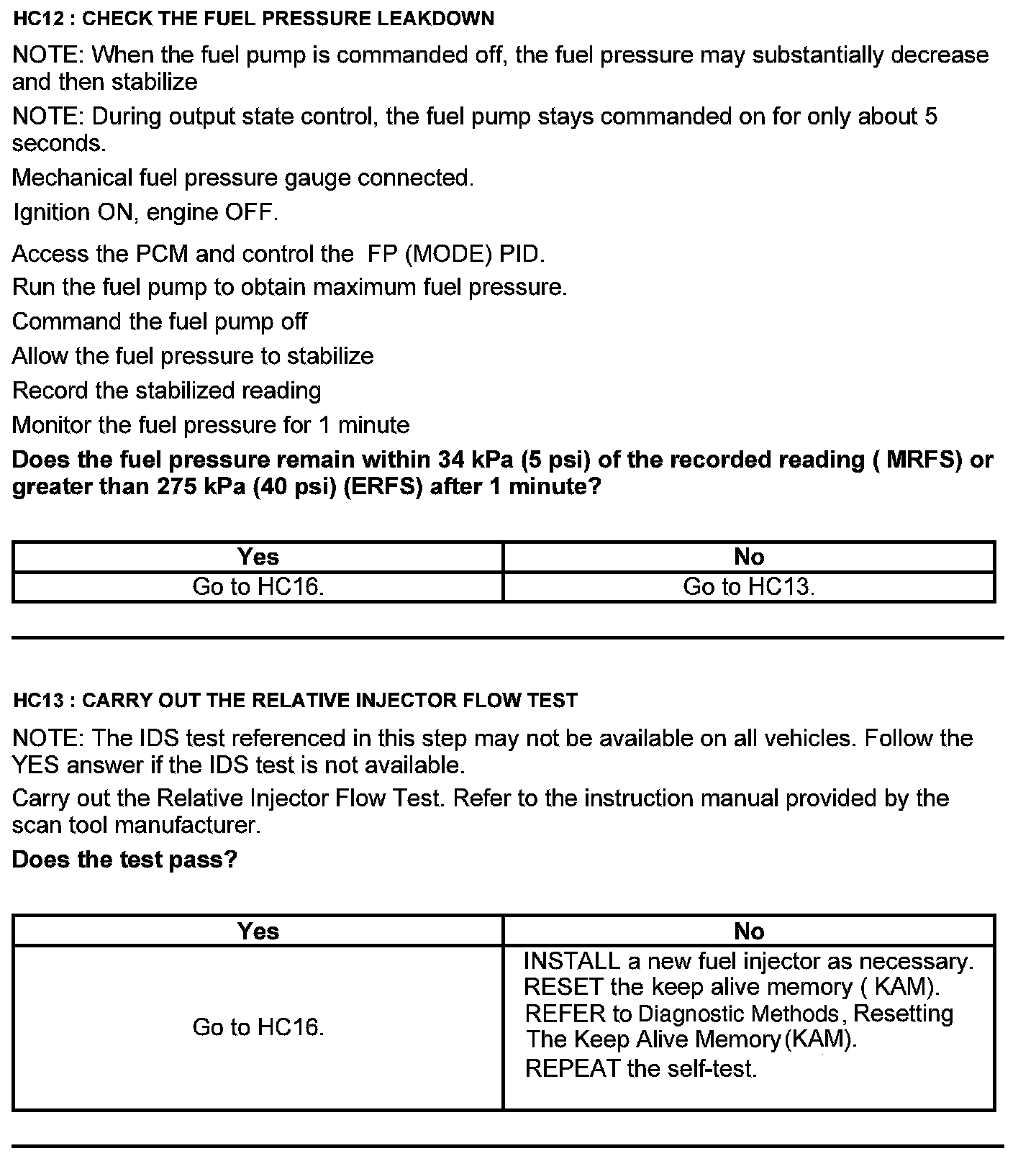 Test HC: Fuel Delivery System