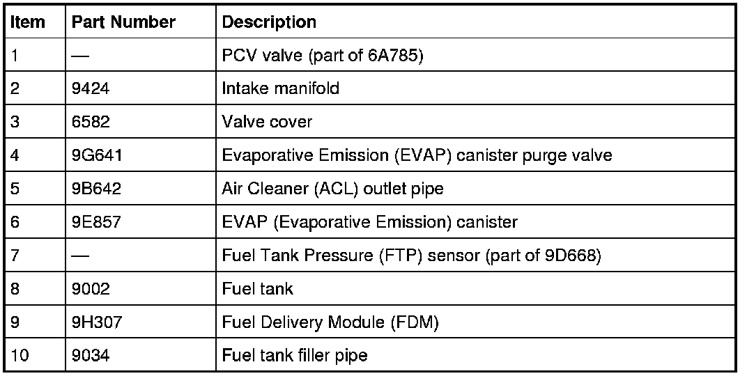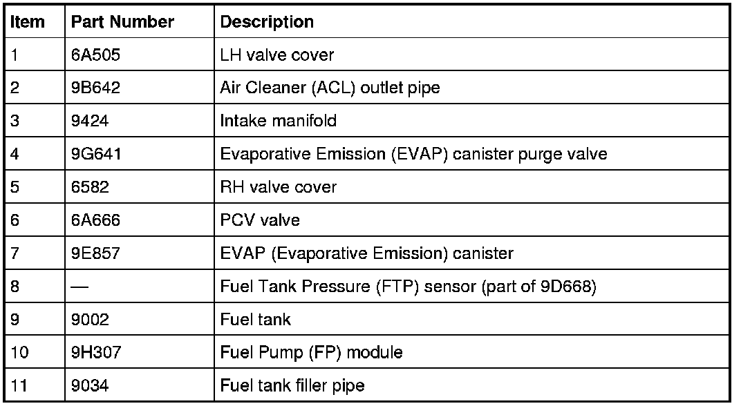 - fuel vapor tube assembly (includes the Fuel Tank Pressure (FTP) sensor).
