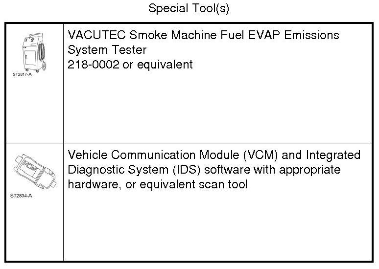 Introduce smoke from the VACUTEC Smoke Machine Fuel EVAP (Evaporative Emission) Emissions System Tester into the EVAP (Evaporative Emission) system and verify that smoke is exiting the fuel tank filler pipe neck area. For additional information, refer to the manufacturer's instructions.