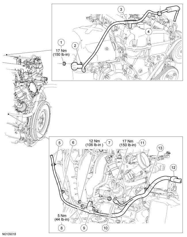13. Disconnect the pin-type retainer from the middle of the intake runners.