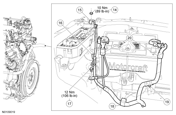 19. Position the BJB (Battery Junction Box) terminal aside.