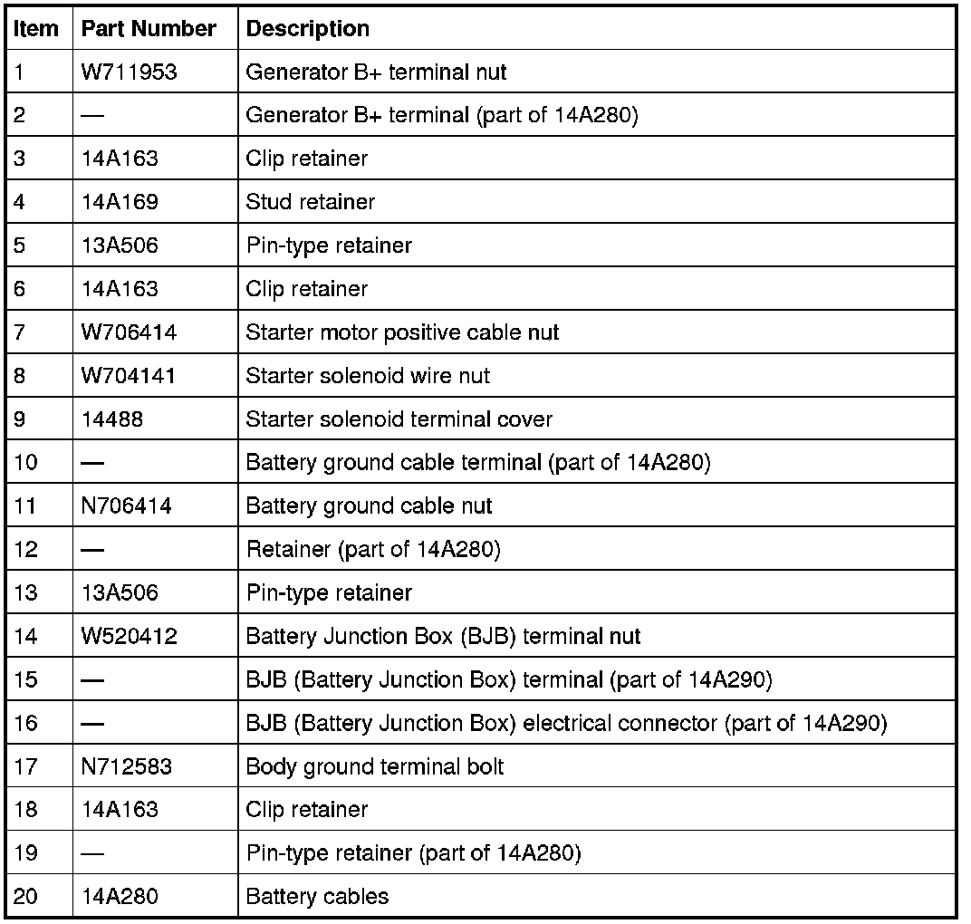 21. Disconnect the retainers fastening the battery cables to the battery tray.