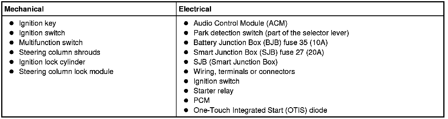 9. If the DTCs retrieved are related to the concern, go to the Smart Junction Box (SJB) DTC Chart Steering Column. For all other DTCs, refer to Body Control Systems.