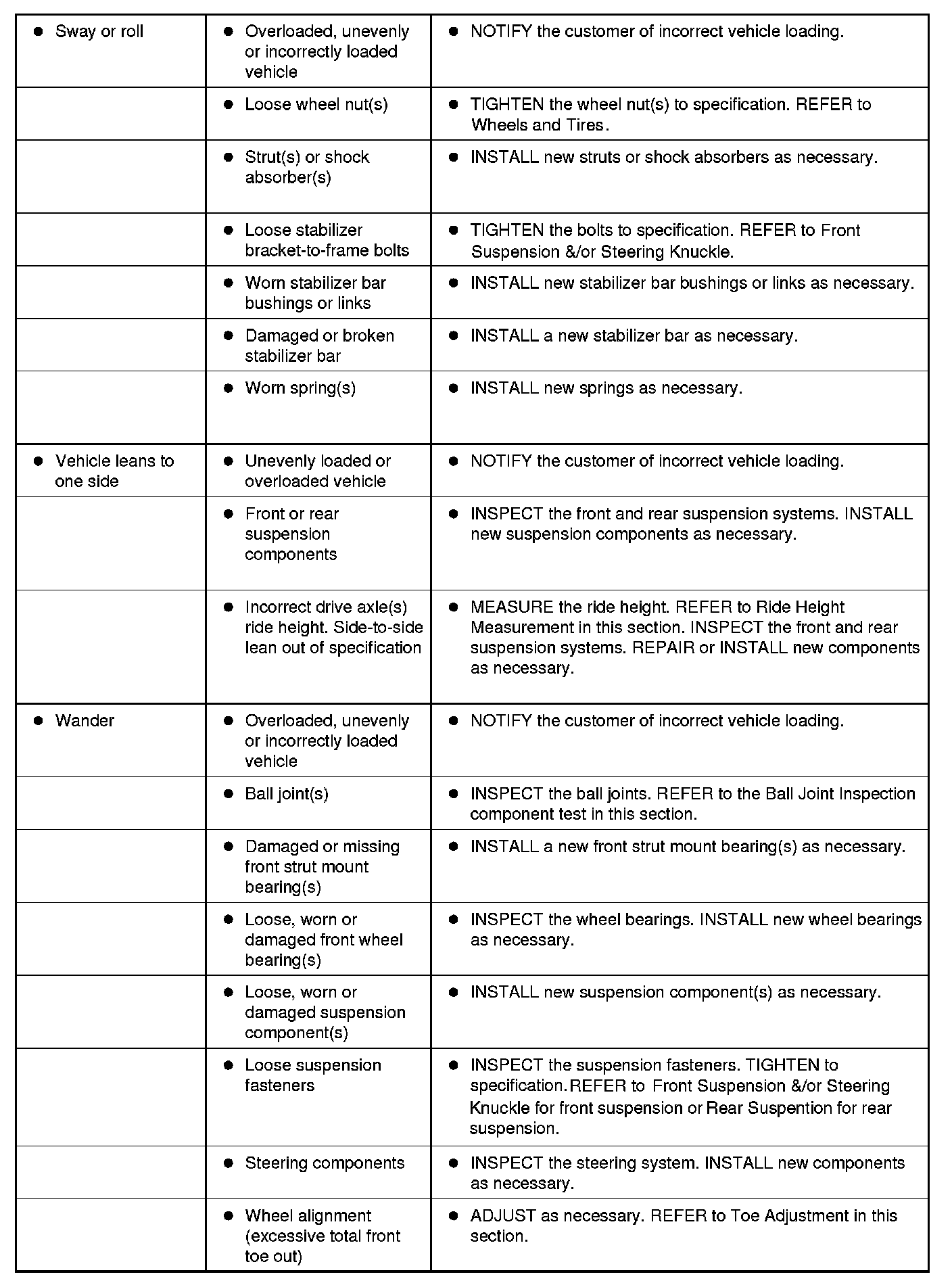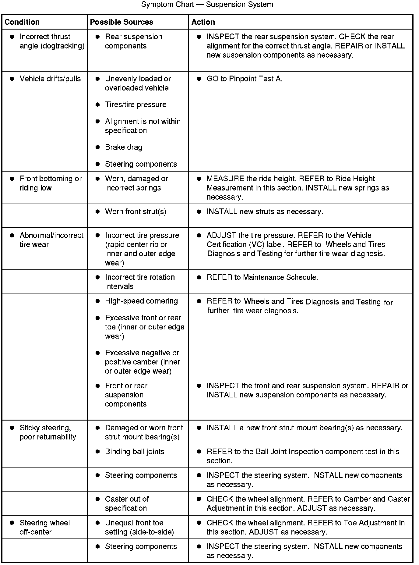 Symptom Chart - Suspension System