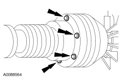 28. Position the driveshaft to the PTU (Power Transfer Unit) and install the 6 driveshaft bolts.