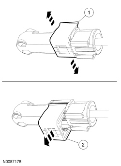 5. Align the selector lever cable end to the manual control lever ball stud and install it with the adjuster unlocked.