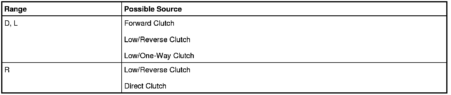 In each of the following ranges D, L and R, press the accelerator pedal to Wide Open Throttle (WOT). Do not hold the throttle open for more than 5 seconds at a time.